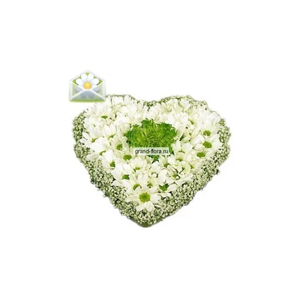 Что может быть романтичнее первого свидания или Дня всех влюбленных? При этом многие из нас задумываются над главным вопросом: «Чем удивить своих любимых?». Международная служба доставки цветов Grand-flora предлагается вам удивить своё нежное создание этим удивительным белоснежным сердцем из хризантем.